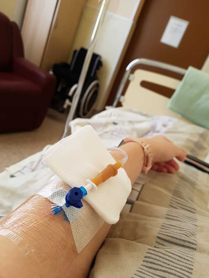 Extra toelichting op de foto’s: Wanneer Simon mij ‘s avonds weer bij het ziekenhuis afzet kun je aan het blauwe raam / het blauwe licht mijn kamer 409 herkennen. 🙂 Alleen de eerste week verblijf ik zolang op de 4e verdieping totdat op de transplantatie afdeling weer kamers vrij zijn. De kamers van de 4e verdieping zijn geen onderdeel van de transplantatie afdeling. Toen ik er net in kwam dacht ik nog, wat zijn hier alle apparaten oud en vergeeld? (Waterkoker, magnetron). Wat blijkt? Boven de kamerdeur hangt een lamp welke het blauwe licht afgeeft. Dit is een desinfecterende lamp die de hele kamer steriel maakt en is enkel aan wanneer er geen personen op de kamer zijn. Dus zodra ik weg ga wordt deze aangezet en zodra ik terugkom moet hij uit. Leuk weetje om te delen 😉