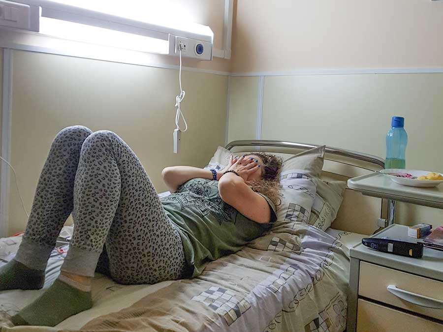 ‘s Avonds nog voor mijn 3e injectie begint de combinatie van de botpijn en de vermoeidheid (want ik ben de afgelopen dagen toch wel flink op pad geweest met Simon) op mijn emoties te werken. Ik ben kapot! Als een pulserende stuwende pijn voel je die miljoenen stamcellen je botten uit vloeien, en dat is geen pretje. En ‘right on time’ kreeg ik toevallig een super lief videotelefoontje van Lilian vanuit de isolatie. Lilian is ook Nederlands en haar schema loopt 2 weken voor op dat van mij. Haar man Rob verblijft net als Simon in het Vega hotel. Best wel handig eigenlijk wanneer onze familieleden die meegekomen zijn, onze ‘carers’ allemaal bij de Izmailovo hotels verblijven. Zo kunnen zij toch nog dingen samen ondernemen en samen naar het ziekenhuis komen wanneer wij patiënten het terrein niet meer af mogen.